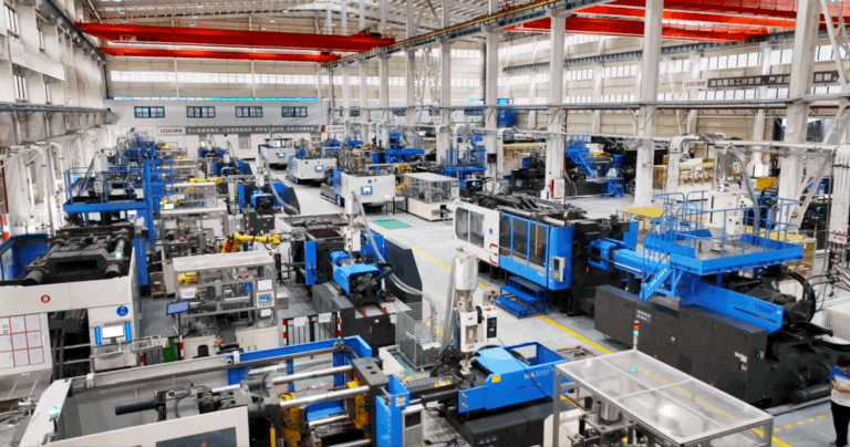 而这些优点的实现全都得益于电热熔管件的自动化生产模式。在联塑 PE 电热熔管件生产车间内配有 23 条 PE 电热熔管件自动化生产单元,从供料到生产成品都实现了全自动化。就连生产过程中最重要的“注塑”环节,也完全是由机械臂、数字化设备实现的。