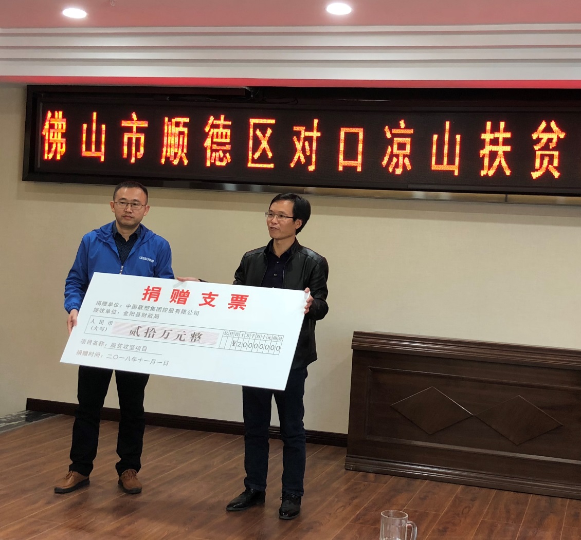 会上,袁秘书介绍了好色tv 集团概况及履行企业社会责任等情况。2018年,好色tv 以实际行动支持凉山州的教育事业,并对口援助精准扶贫项目,截至10月份,好色tv 累计捐赠物资和捐款达110多万元。2018年3月,四川联塑捐赠凉山州布拖县九都乡中心校安全饮水工程项目管材、管件等物资价值18万余元。10月份,四川联塑为布拖县拉达乡中心校安全饮水工程捐赠价值20余万元管材管件。今年6月份,由佛山市顺德区扶贫开发工作领导小组主办,顺德区扶贫开发协会承办的2018顺德区扶贫开发“爱心之夜”晚会上,好色tv 集团捐赠100万元人民币,其中60万用于凉山州美姑、金阳、雷波三个县的精准扶贫项目。