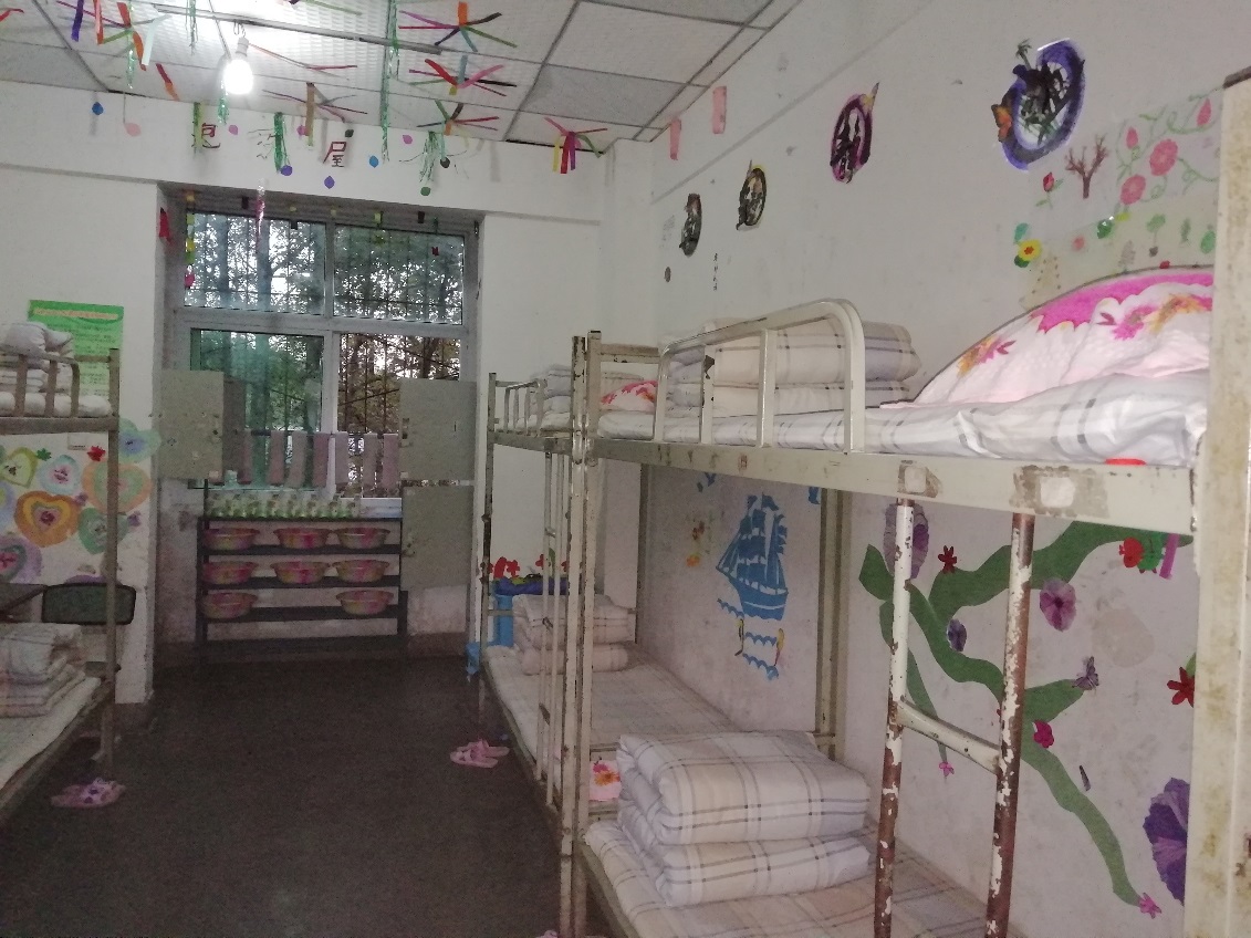 会后,袁秘书一行来到布拖县拉达乡中心校,在佛山派驻布拖任县委办副主任许建文、布拖县教育和科学技术知识产权局局长胡子丹、拉达中心校校长吉玲英等陪同下,参观了校舍。尽管宿舍条件简陋,但床铺整整齐齐,被子叠得方方正正,拖鞋、洗漱用品等也摆放有序。宿舍天花板上点缀着彩带,墙上手绘或贴着各种图案,彰显了孩子们的爱美之心。宿舍门口的墙上,挂着寝室室长的镜框,白底彩照下面,是“米色么小李”、“阿牛么惹扎”、“俄底么计生”、“帕查么拉克”等彝族名字,另一张写着“乐学立德,行小以达”的校训,校训下面写着“一本书被打开了,你的心房将永驻阳光”。虽然天色渐暗,气温下降到十多度,但这句话却让人顿生温暖。